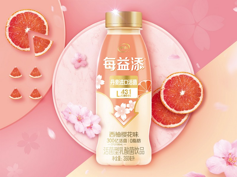 “西柚和櫻花的結(jié)合,花果搭配清新豐富。包裝上,在整體保持每益添品類(lèi)視覺(jué)基調(diào)的一致性的基礎(chǔ)上,添加了花果設(shè)計(jì)元素。視覺(jué)顏色上傳達(dá)了櫻花和西柚的混合特征,櫻花的粉和西柚的橙結(jié)合,元素搭配上采用‘小即是多’的原則,幾朵櫻花一片西柚表現(xiàn)了每益添‘快樂(lè)簡(jiǎn)單無(wú)負(fù)擔(dān)’的愿景?!庇?8位產(chǎn)品研發(fā)和市場(chǎng)調(diào)研方面的專(zhuān)家組成的評(píng)委團(tuán),圍繞感官體驗(yàn)、理念創(chuàng)新、消費(fèi)者溝通與整體感受等維度,對(duì)每益添西柚櫻花創(chuàng)新口味飲品進(jìn)行了評(píng)鑒,并給出這樣的評(píng)審語(yǔ)。作為伊利旗下唯一專(zhuān)注低溫活性乳酸菌飲品的品牌,每益添始終堅(jiān)持助消化的功能打造,其每100毫升富含300億的丹麥進(jìn)口專(zhuān)屬活菌,從2018年首創(chuàng)百香果創(chuàng)新口味至今,屢創(chuàng)低溫活乳新佳績(jī),引領(lǐng)低溫活乳發(fā)展新潮流。