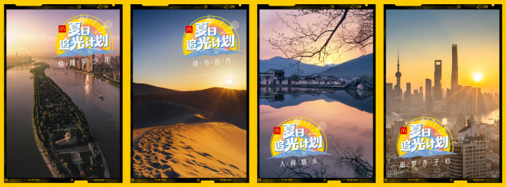 7月6日,麥當勞“夏日追光計劃”從西安大雁塔出發(fā),來到長沙橘子洲頭,領略“恰同學少年”的意氣風發(fā)。從敦煌、漠河,到青海湖和張掖,一起尋找“詩與遠方”??缭角鄭u、杭州、福州、大連、蘇州和平遙,看遍“人間煙火”。在廣州小蠻腰和深圳東門,感受“追夢赤子心”。為期28天的追光之旅,暖心浪漫的麥當勞為大家搜集不同城市的日出,并用四個主題串起28地。敬請關(guān)注麥當勞嗶哩嗶哩(B站)帳號,鎖定連續(xù)28天的直播,也可以訪問麥當勞官方網(wǎng)站觀看每天日出的精華視頻。