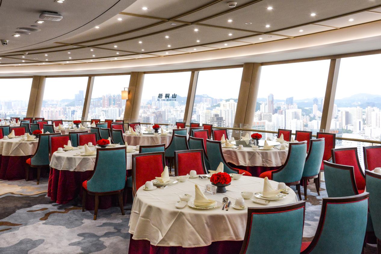 恰逢深圳建市40周年,國貿(mào)旋轉(zhuǎn)餐廳全面升級,為賓客呈獻(xiàn)以“春天的故事”為主題的現(xiàn)代化新中式裝潢,精心營造舒適高端的環(huán)境。重新裝修后的旋轉(zhuǎn)餐廳,不僅升級了專屬觀光電梯,還在42層布置了“改革開放展廳”供賓客參觀。