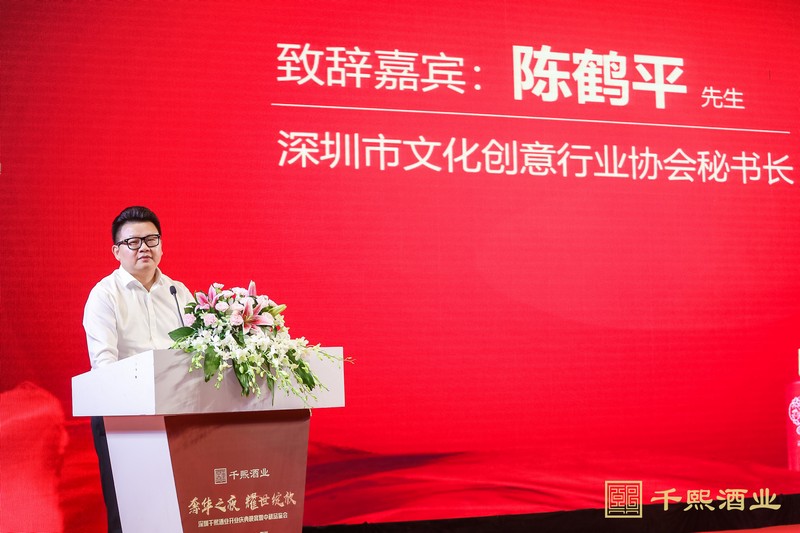 深圳市文化創(chuàng)意行業(yè)協(xié)會秘書長陳鶴平在致晚宴詞中指出,千熙走進鵬城,不僅讓給予了深圳的醬酒愛好者一次難能寶貴的相聚機會,也大家對千熙品牌有了新的認識,選擇千熙是極其正確的選擇。