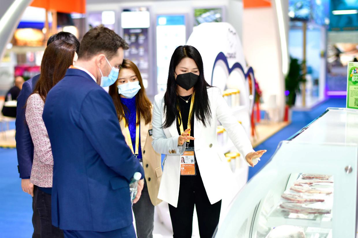 開館第一天,恒大農(nóng)牧展臺就吸引了眾多“訪客”。除了明星產(chǎn)品PRM牛羊肉和咔哇熊奶粉依舊被“圍觀”之外,來自世界各原產(chǎn)地的優(yōu)質(zhì)進(jìn)口食品也備受關(guān)注,如陌上金蓮泰國茉莉香米、西班牙特級初榨橄欖油、烏克蘭葵花籽油、新西蘭黑金鮑魚、大西洋海參、法國紅酒等高品質(zhì)進(jìn)口食品,吸引了眾多國內(nèi)外采購商陸續(xù)前來交流洽談。