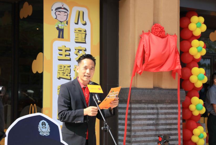 全國首家麥當(dāng)勞兒童交通安全主題餐廳(深圳市福田區(qū)東海城市廣場餐廳)啟動儀式上,麥當(dāng)勞深圳市場總經(jīng)理陳影宏致辭