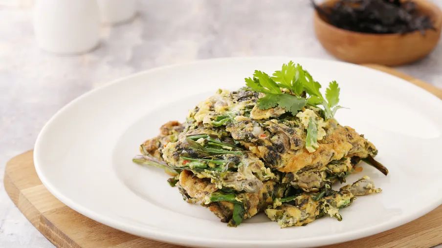 紫菜海蠣煎蛋:頭水紫菜、海蠣被蛋汁層層包裹,紫菜的鮮充分融進(jìn)每顆海蠣中,是全家大小都愛吃的鮮美。
