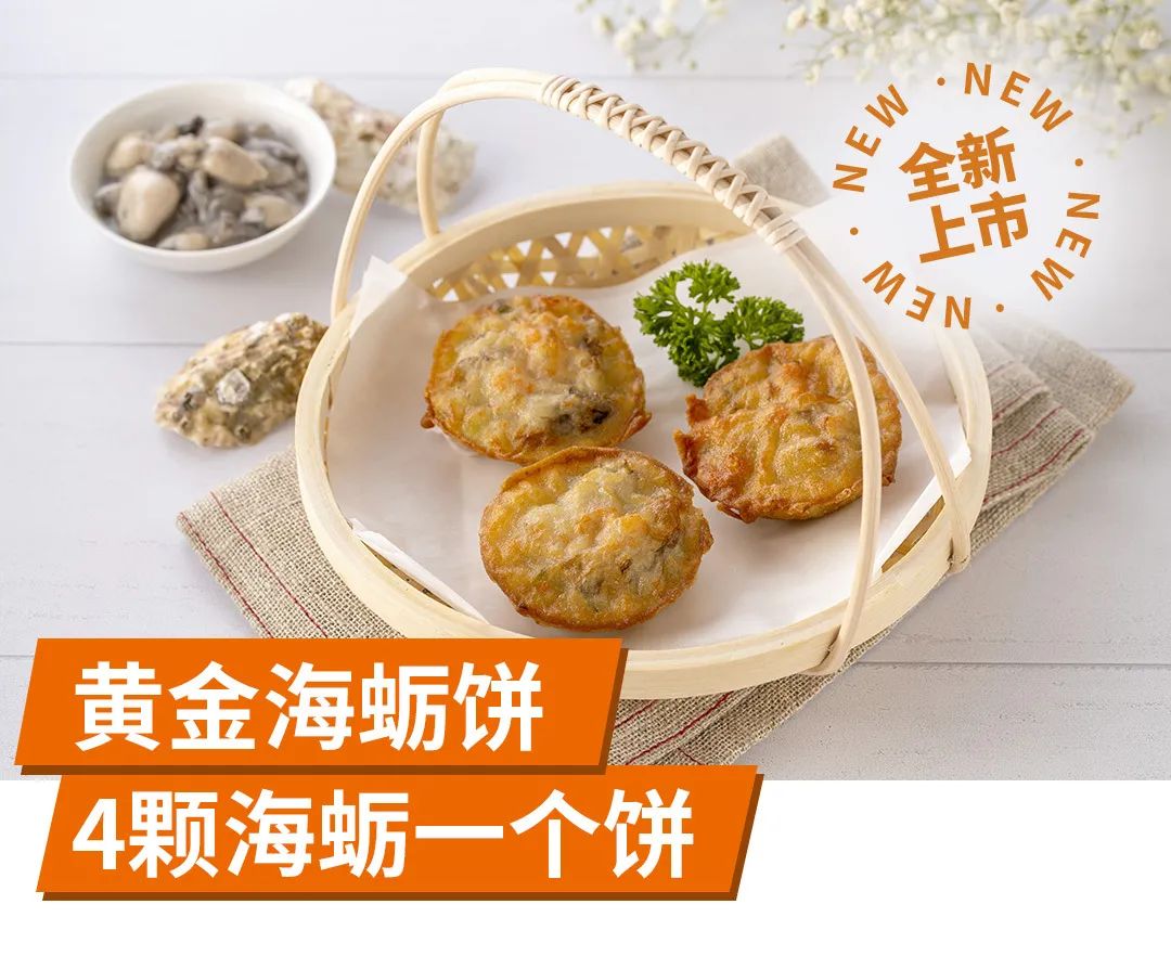 黃金海蠣餅:福建當(dāng)?shù)氐膫鹘y(tǒng)小吃,一咬酥脆,餡料飽滿,外皮用五常大米和東北有機(jī)黃豆,混合磨成的米漿制作,每個(gè)餅內(nèi)包裹著4顆海蠣,每一口都能品嘗到海蠣之鮮,增加了蔬菜和小蝦米的比例,更香也更營養(yǎng)豐富!