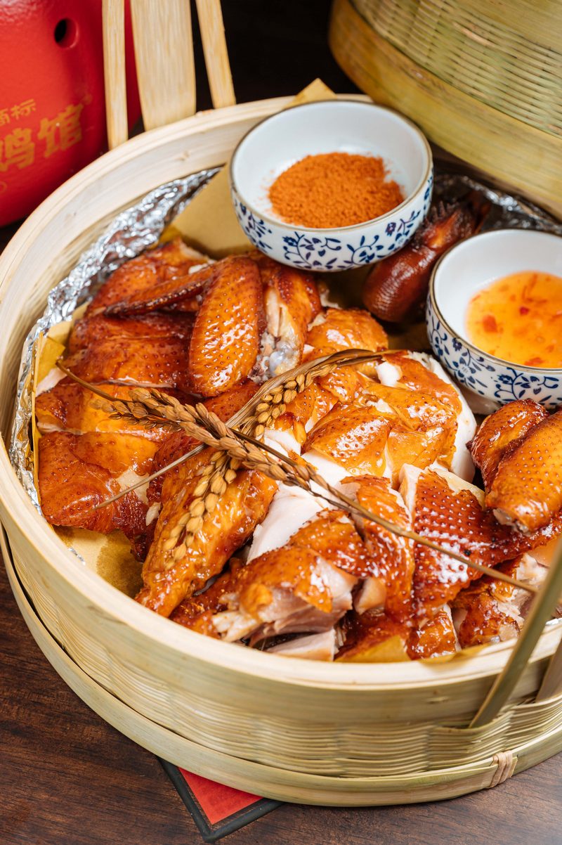 以雞為主要烹飪食材,洞庭土雞館的湖南師傅創(chuàng)造出了不一樣的菜肴。每桌食客坐下,都少不得一碗暖乎乎的洞庭土雞湯來“開場”。它的登場也相當(dāng)有氣勢,長沙紅磚窯特別定制的大湯鍋,內(nèi)膽是紫砂構(gòu)造,這樣的設(shè)計既是出于美觀,又是出于更長時間更有效保溫的效果。俗話說得好,工欲善其事必先利其器。土雞方面,師傅特別精選了湖南竹山雞,肉質(zhì)的彈性略勝一籌,據(jù)介紹,竹山雞的養(yǎng)殖戶開放了大片山頭讓雞跑,放養(yǎng)時間足夠長,達(dá)到一年多,在如今快節(jié)奏的社會里已實(shí)屬難得。老雞加山泉水文火熬3個小時,并沒有其他的味道干擾,簡簡單單就是本味。