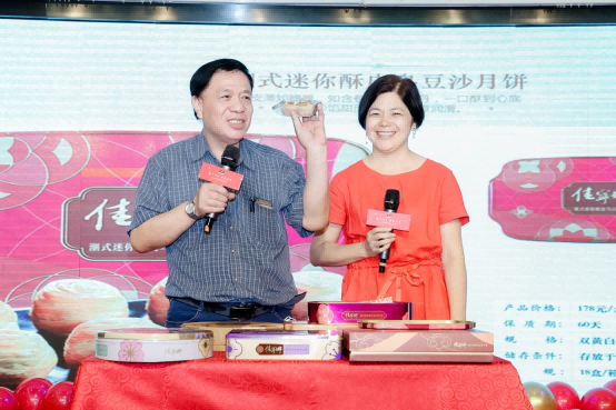 佳寧娜食品深圳首席品牌官及運(yùn)營(yíng)總監(jiān)潘小兵在活動(dòng)現(xiàn)場(chǎng)講解2021年熱銷月餅