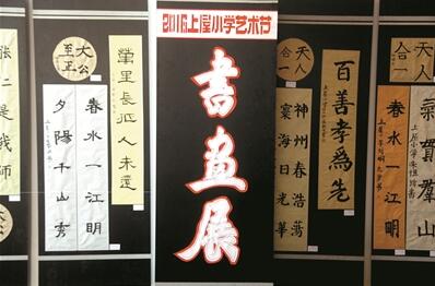 學(xué)校是教育人、培養(yǎng)人的主陣地,而深化教育改革,打造藝術(shù)特色,不僅僅是幾個教室、一個操場的概念,也絕非是一堂課、一次活動。走進(jìn)上屋小學(xué),記者發(fā)現(xiàn),學(xué)校良好的藝術(shù)文化環(huán)境無時無刻不在發(fā)揮著育人作用。從名家名畫進(jìn)教室、班級美術(shù)活動展區(qū)等班級藝術(shù)文化環(huán)境營造到墻畫、板報甚至是校園綠化等校園外部環(huán)境建設(shè),學(xué)校的每一處角落都散發(fā)著濃郁的藝術(shù)氣息。同時,每個樓層將學(xué)生的書法、繪畫等藝術(shù)成果進(jìn)行展示,讓學(xué)生從中體會到成就感、享受到審美的愉悅。孩子們在學(xué)校濃厚的藝術(shù)教育氛圍中,盡展才華、盡情發(fā)揮,放飛自己的夢想。