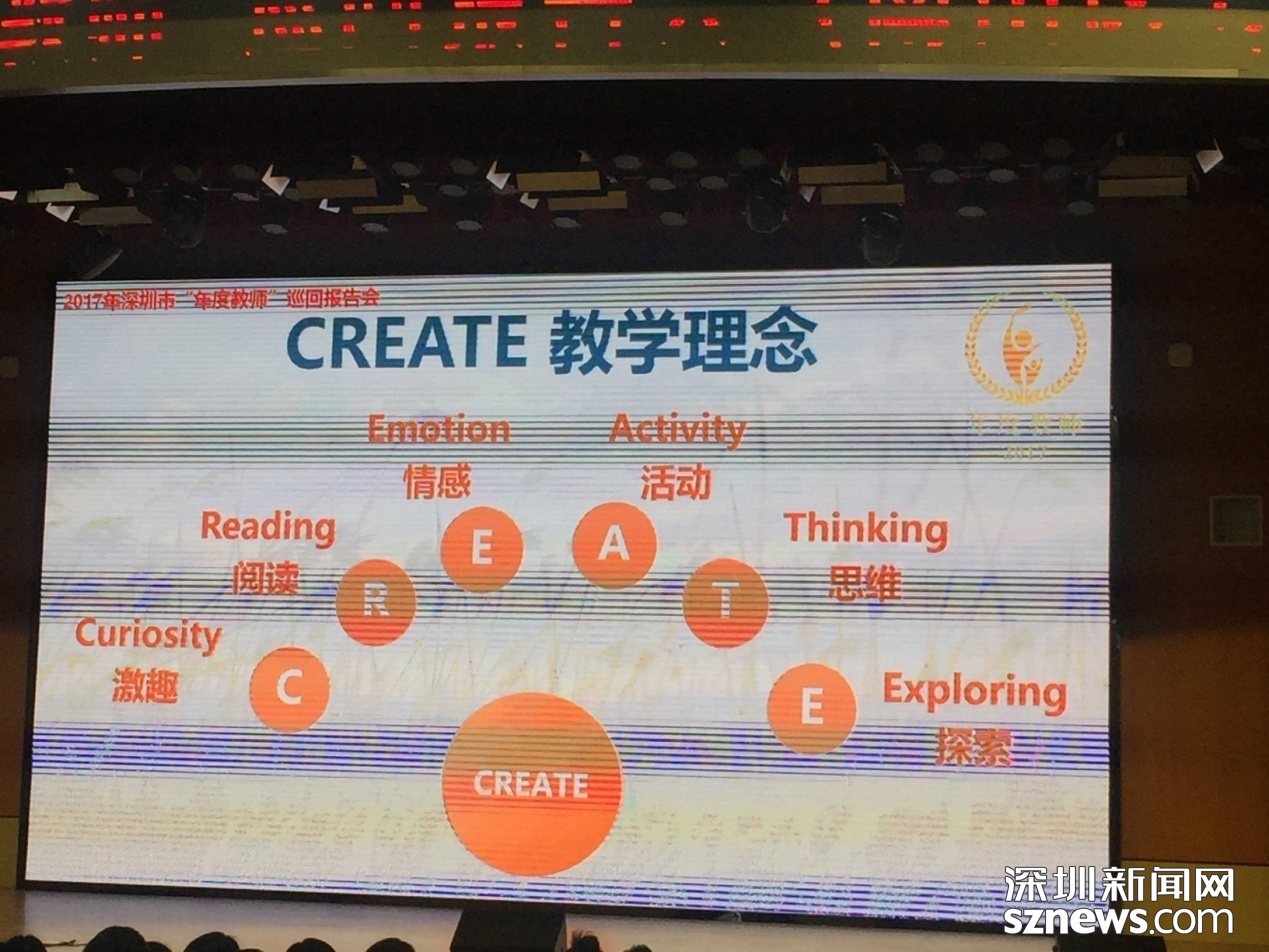 我有幸聽了一場(chǎng)深圳市年度教師的巡回演講,其中一個(gè)老師講到自己的幸福成長過程時(shí),展示了自己獨(dú)有的特色教學(xué)理念——CREATE教學(xué)理念,如圖,她的所有課堂充現(xiàn)了激趣、閱讀、情感、活動(dòng)、思維和探索等六大環(huán)節(jié),彰顯特色,成就精英,當(dāng)你達(dá)到如此境界時(shí),幸福感和成就感就會(huì)水到渠成,雖然不求人人成精英,但愿人人有特色。