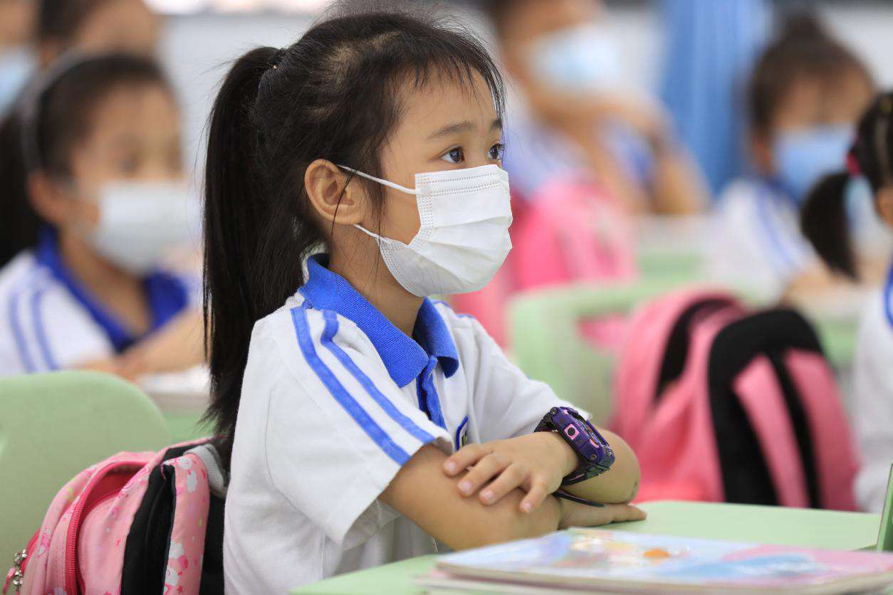 上課時(shí)也是要戴口罩的,但這并不影響大家上課的積極,依然是爭(zhēng)先搶后的舉手。