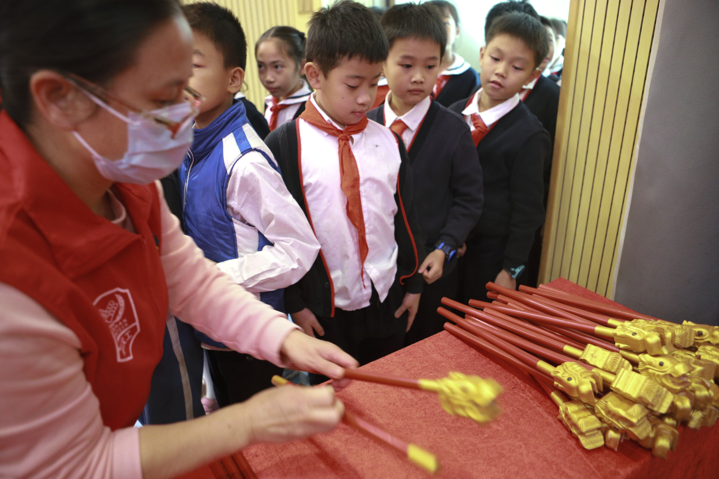參加本次活動的學生們大感驚喜和意外,他們在入場的時候都從工作人員的手上領到一份特別可愛的佾舞“龠翟”的小道具。