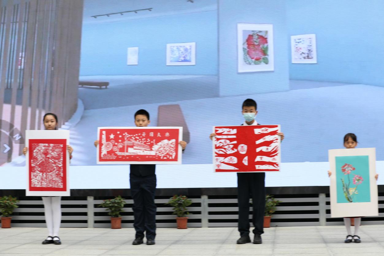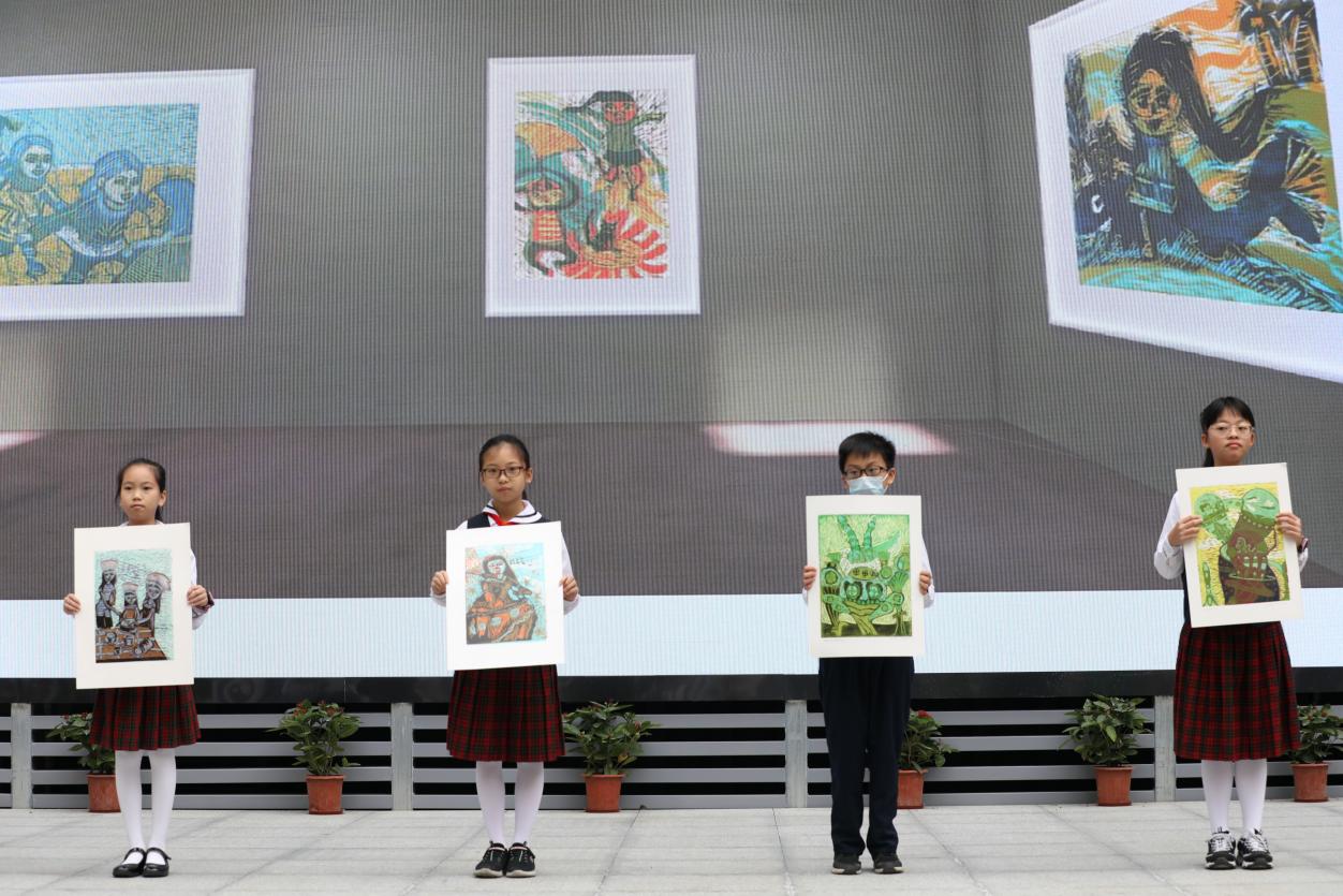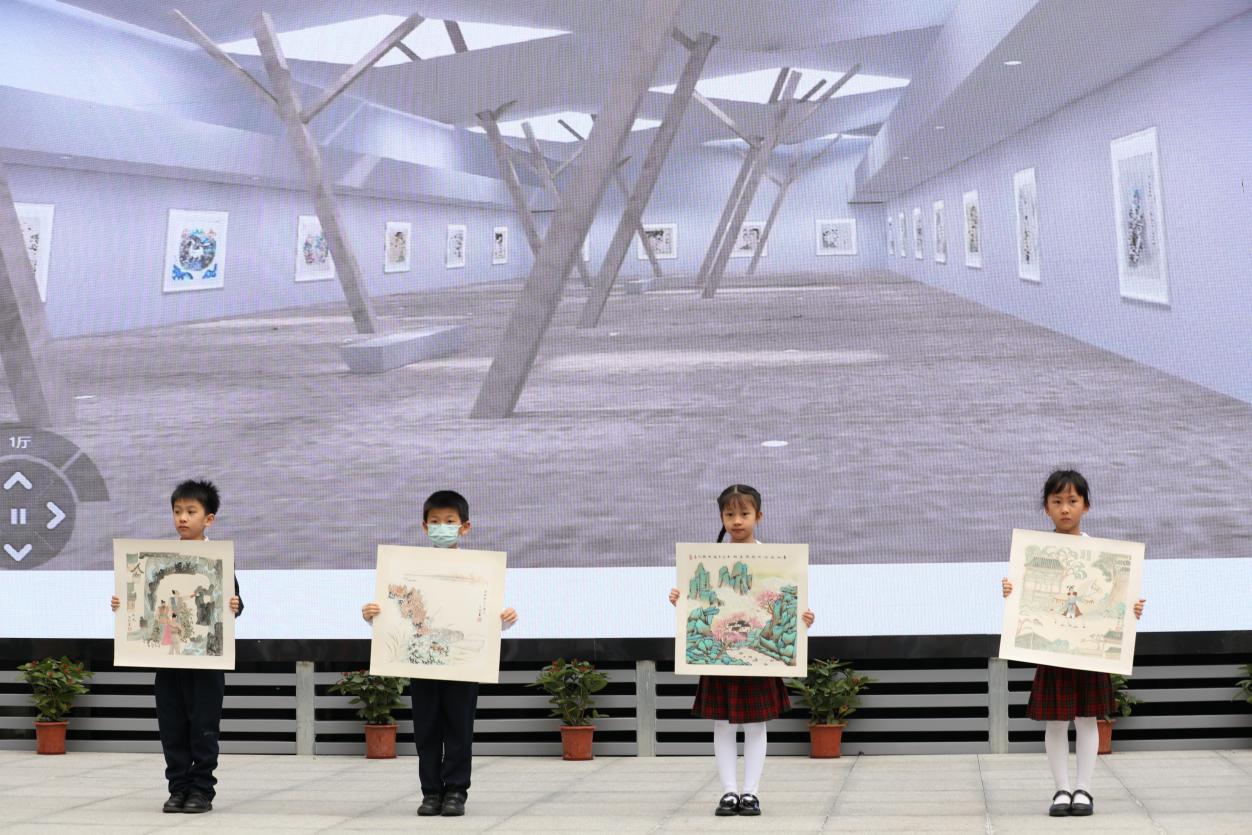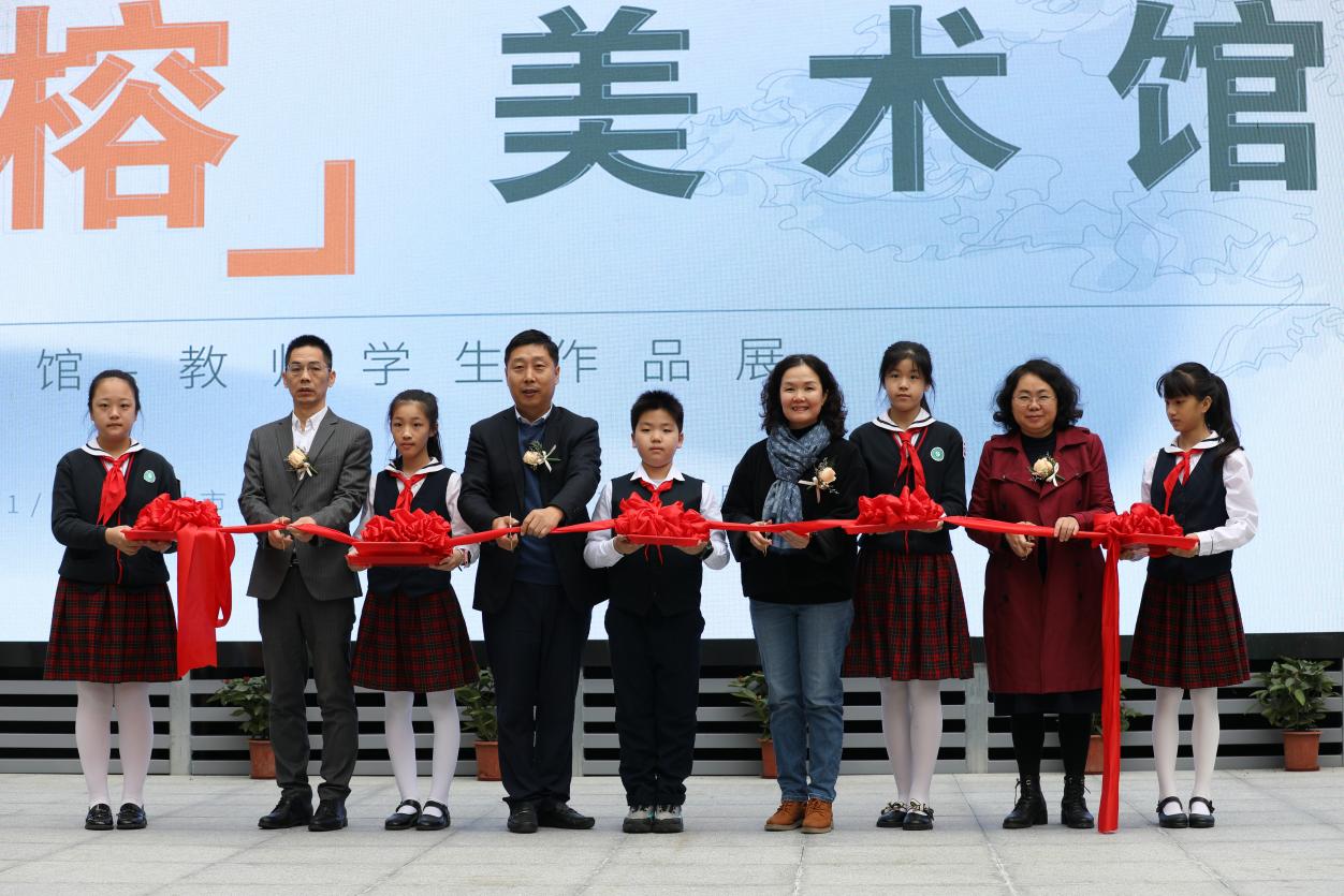 與開(kāi)館和展覽同時(shí)推出的,還有“榕”美術(shù)館的云展館。云展館以新媒體形式,擴(kuò)大了展覽范圍,使得學(xué)校的美術(shù)美育成果得以向外部展示。推出之際,學(xué)校舉行了云展館的剪彩儀式。解署昱校長(zhǎng)致辭并宣布開(kāi)館,福田區(qū)教科院藝術(shù)辦林影萍主任、解署昱校長(zhǎng)、劉權(quán)祥副校長(zhǎng)、姚紅霞副校長(zhǎng)為云美術(shù)館剪彩,并向全校學(xué)生贈(zèng)送了云展館資料。