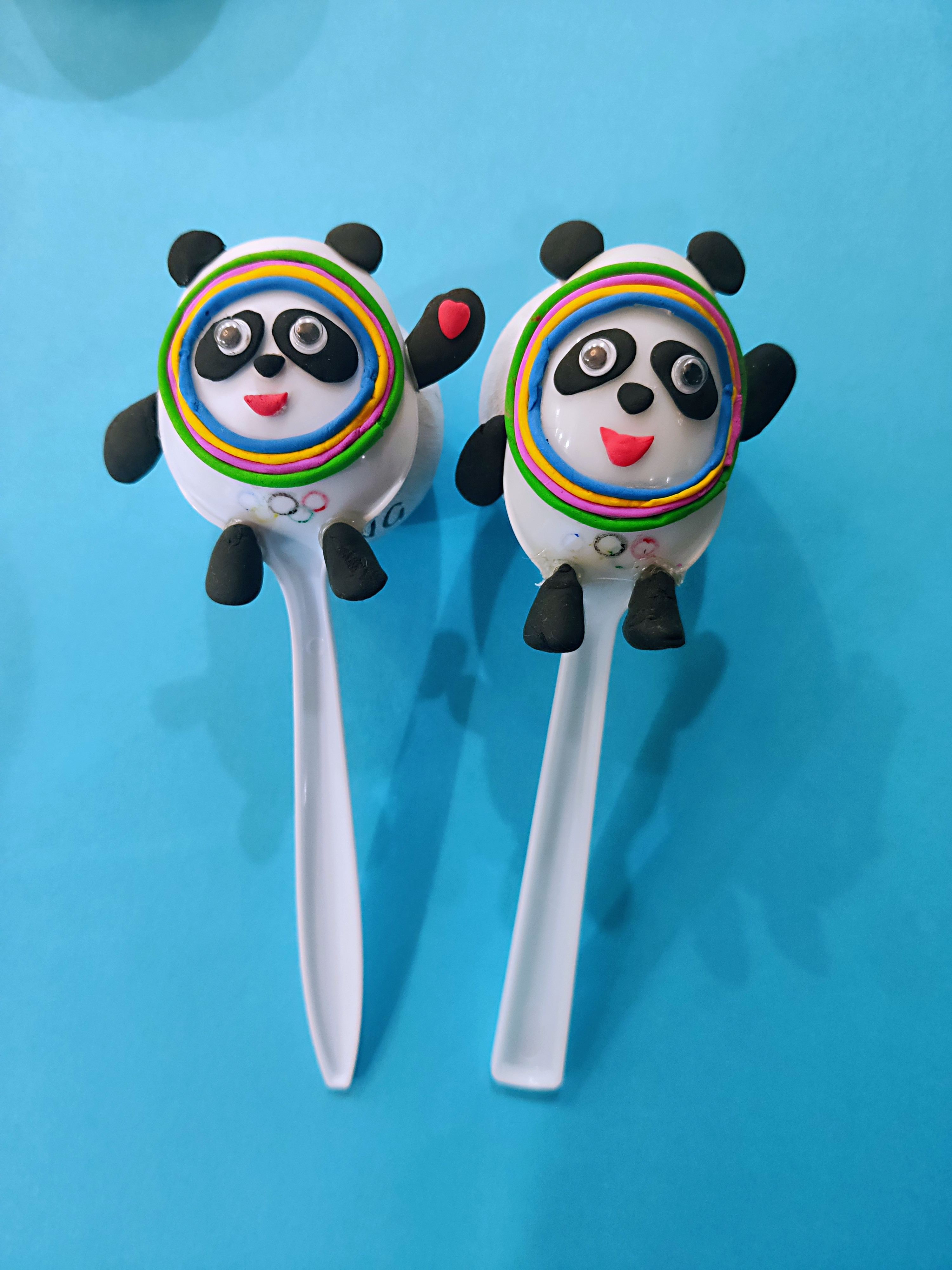 接著我發(fā)現(xiàn)身邊的很多東西都可以變廢為寶做成冰墩墩,我把用過的一次性餐勺洗干凈,做成了餐勺冰墩墩;打乒乓球時,發(fā)現(xiàn)了廢舊的乒乓球,回家洗干凈消毒,做成乒乓球冰墩墩;我走在路上,看到了一塊橢圓形的石頭,把它洗凈消毒,做成了石頭冰墩墩。