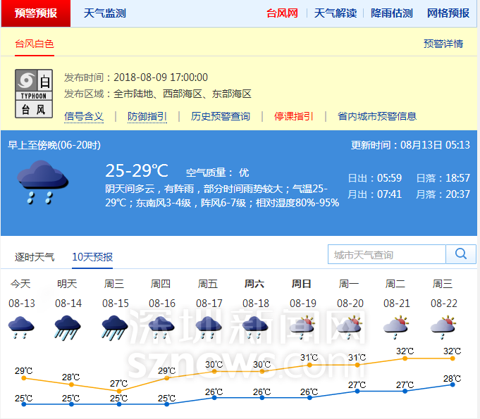 深圳市氣象臺預報員張麗表示,深圳將較長時間受熱帶低壓外圍環(huán)流影響,8月12日-15日將持續(xù)間歇性頻密降雨,這4天累積降雨量將達100-150毫米,局部250毫米以上;其中,8月12日-13日,有大雨,局部暴雨;8月14日-15日為降雨最強時段,有暴雨到大暴雨,最大小時雨強50-80毫米,沿海和高地最大陣風8-9級;8月16日開始,雨勢減弱。