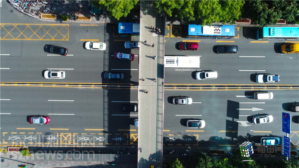 《飛閱福田》的第一站來到了備受矚目的華強(qiáng)北。華強(qiáng)北是中國電子第一街,也是深圳引以為豪的一張名片,這里每天車來人往,交通繁忙。位于華強(qiáng)北片區(qū)西部、深南中路上的中航天橋就是華強(qiáng)北一處重要的交通樞紐。2018年2月深圳市交通運(yùn)輸委員會福田交通運(yùn)輸局發(fā)布《中航天橋及周邊空中慢行系統(tǒng)工程(規(guī)劃及設(shè)計(jì))》招標(biāo)公告,公告中提出,深南路中航天橋設(shè)施簡陋,存在無遮風(fēng)避雨頂棚,無電扶梯,結(jié)構(gòu)老化等情況,已不符合福田區(qū)打造國際城市的目標(biāo)及廣大市民對過街品質(zhì)的需求,須盡快對該天橋拆除重建,新建天橋上設(shè)置綠化、頂棚以及電扶梯,提升天橋景觀藝術(shù)及交通品質(zhì)。