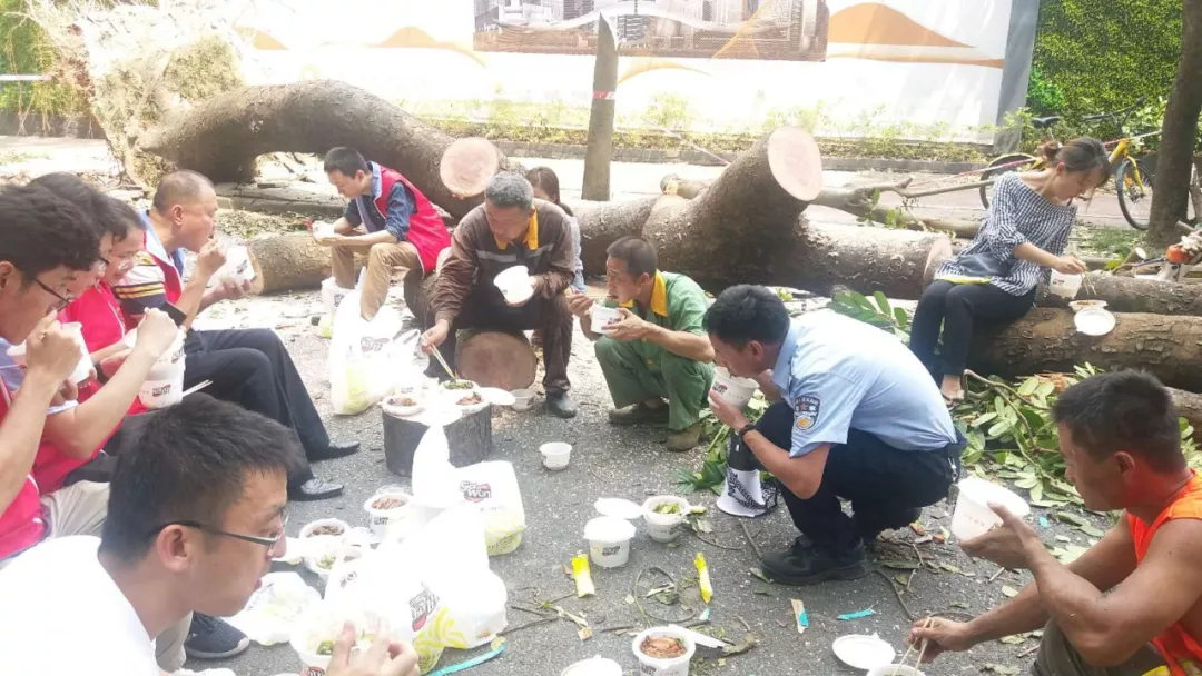 從臺風(fēng)前到臺風(fēng)后,唐順華一直在一線。他不僅是一個指揮員,還是一名戰(zhàn)斗員,一起去處理倒伏樹木、清理路障。因?yàn)槿耸址浅S邢?,他不僅一直要組織指揮,自己也一直身體力行,連續(xù)90多個小時(shí)沒有回家,一直在轄區(qū),排查隱患,處理事情。