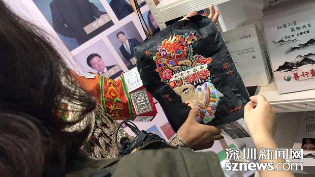 陽(yáng)女士向記者展示非遺的繡品