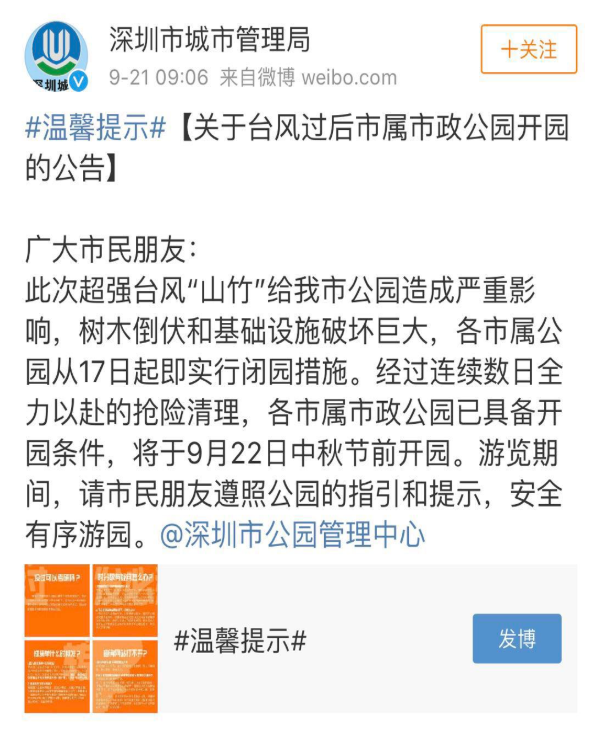經(jīng)受過臺風(fēng)洗禮后的深圳市屬公園今天!??!終于都開園啦!