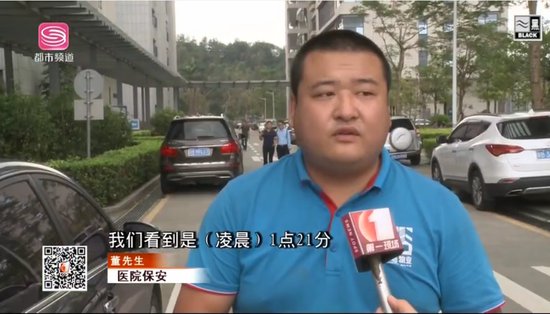 值班保安緊急通知了醫(yī)院警務(wù)室民警,并在差不多相同的時間趕到了事發(fā)病房了解情況,并第一時間查看病房監(jiān)控。在醫(yī)院樓下,記者見到了昨晚值班的保安之一董先生,他也證實了劉女士的說法。