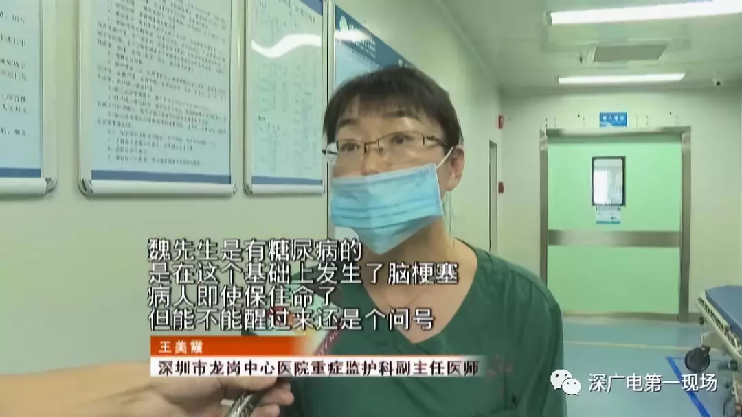 蕭先生介紹,魏師傅從一開始的清醒到病情加重,只有前后十幾分鐘的時(shí)間。等120救護(hù)車送到龍崗中心醫(yī)院之后,魏師傅已經(jīng)陷入昏迷,不省人事。