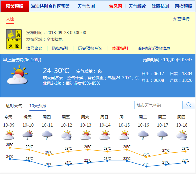 深圳新聞網(wǎng)訊 鵬城昨日持續(xù)晴朗干燥的天氣,局部出現(xiàn)零星小雨。市氣象臺預(yù)測,今日維持晴好天氣,明起受冷空氣影響,偶有小雨,氣溫回落。近來天氣持續(xù)干燥,市民應(yīng)注意防火安全。