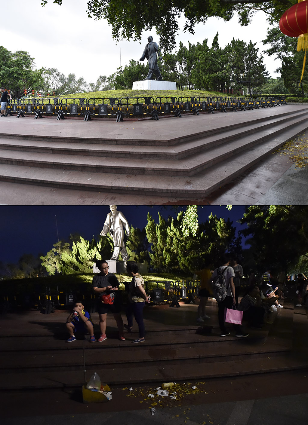 鄧小平雕塑右側(cè),燈光秀結(jié)束后垃圾迅速被責任環(huán)衛(wèi)工人清掃