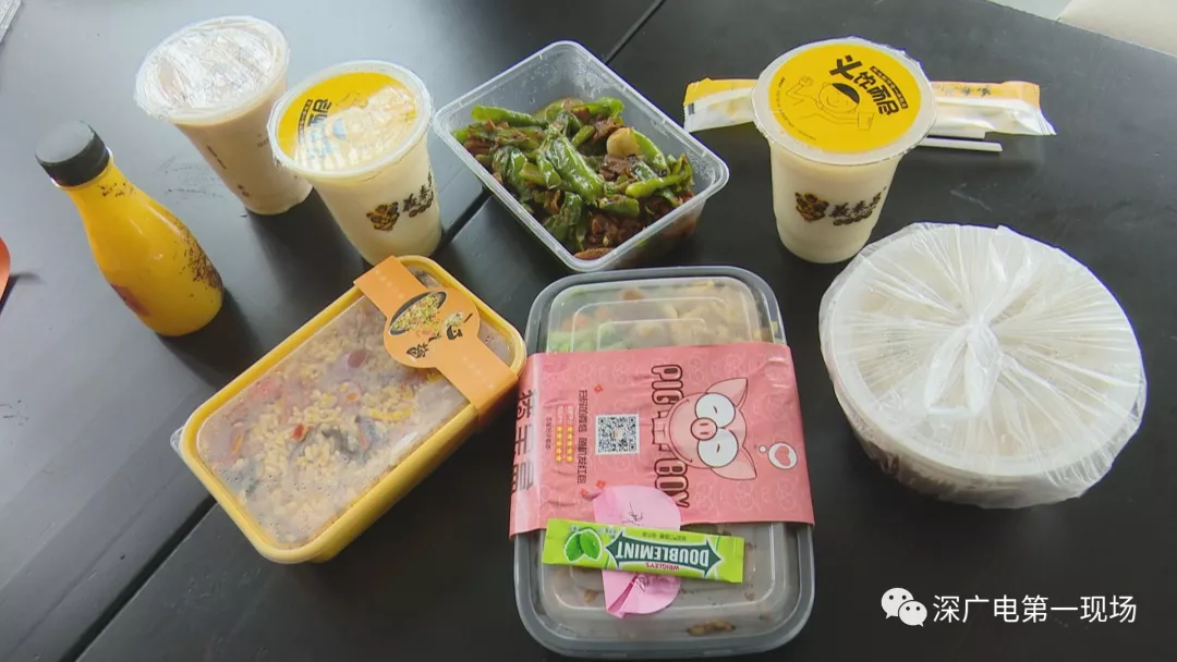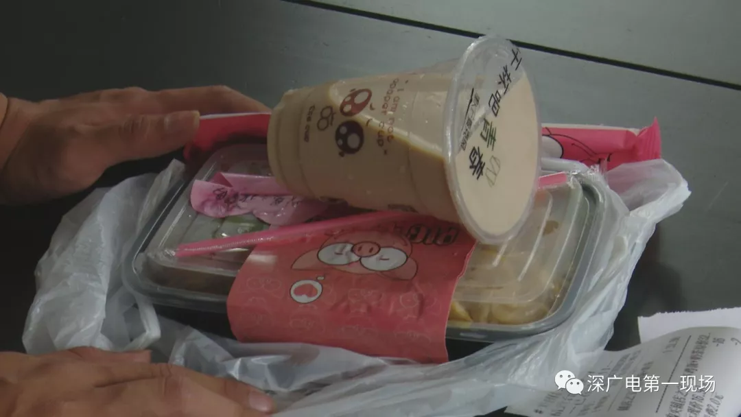 今天中午,記者從外賣平臺上隨機(jī)選取了幾家餐廳,分別購買了四份外賣,并配了冷飲。不過第一份外賣送上門,記者就發(fā)現(xiàn)冷飲與熱菜被裝在了同一個(gè)袋子中。