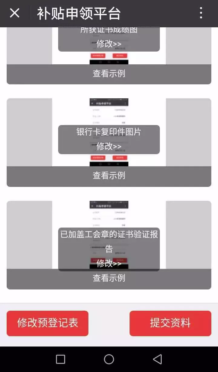 第四步:按要求上傳相關(guān)證明材料,點擊【提交資料】;