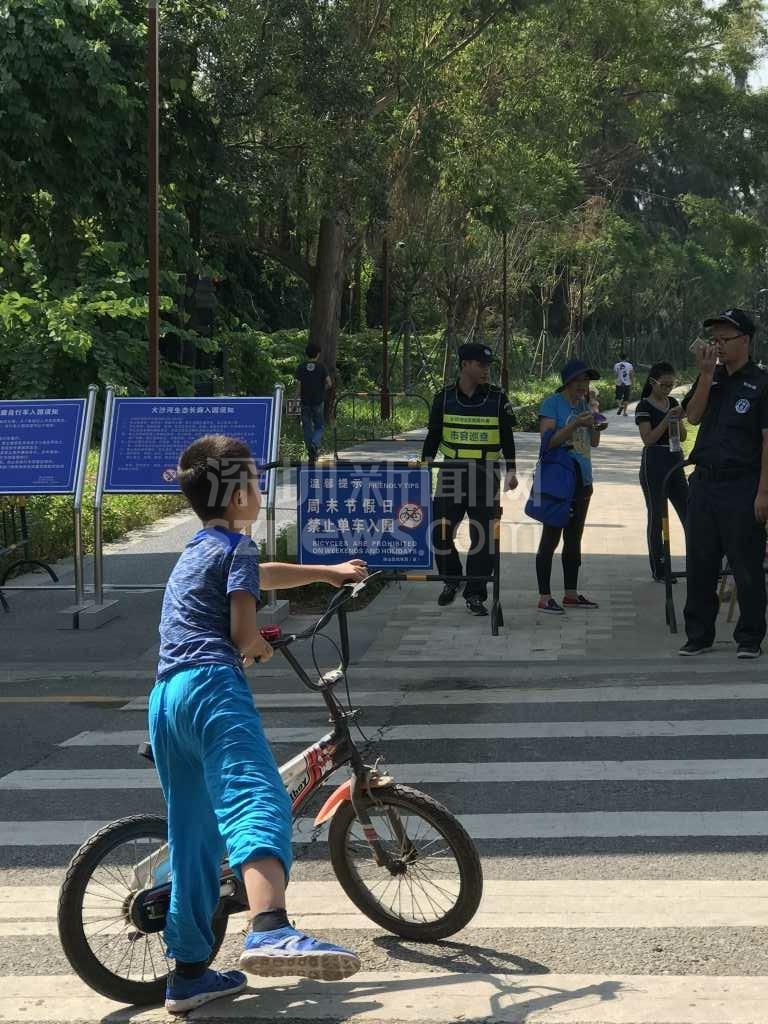 由于周六日深圳灣公園不讓進,而從蛇口新街到濱海沙河西立交橋這段路在公園內(nèi),該網(wǎng)友只能改從望海路騎至濱海沙河西立交,當(dāng)準(zhǔn)備由濱海沙河西立交騎行到深南沙河西立交時,又被告知這條騎行道同樣在深圳灣公園管轄范圍內(nèi),不準(zhǔn)進。最后,網(wǎng)友只能帶著孩子沿沙河西路極其狹窄且危險的小道騎行到深南大道,再接著騎到深南沙河西,最終才到達大沙河公園(大沙河?xùn)|側(cè)的沿岸)。
