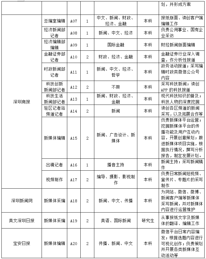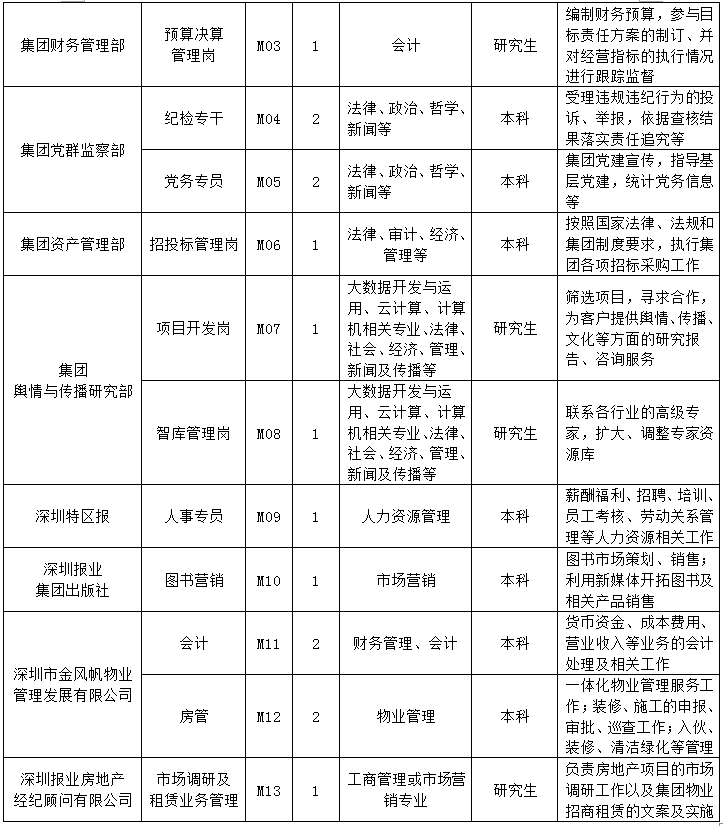【深圳報(bào)業(yè)集團(tuán)2019屆校招崗位需求】