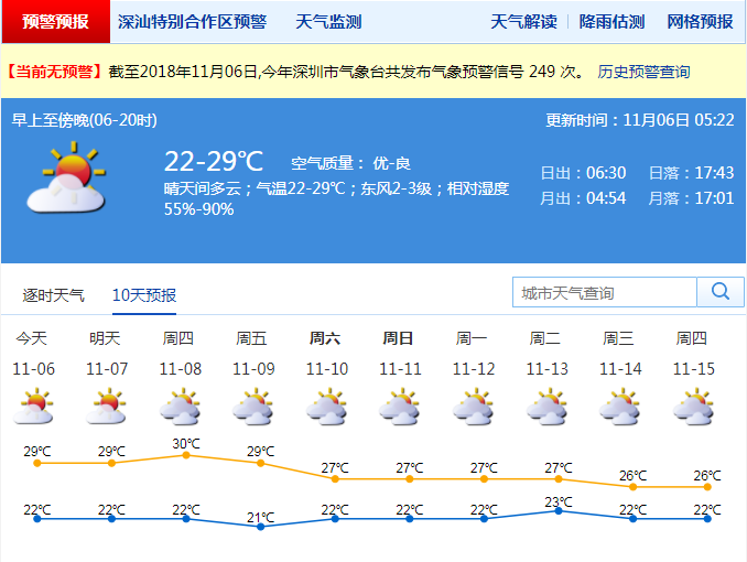 原標(biāo)題:深圳氣溫回升 10 天內(nèi)無法入秋 今日最高氣溫 29 ℃左右