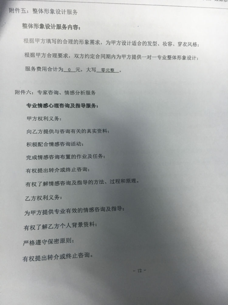 8位里面見了5位,還沒有找到適合的,劉小姐開始著急。她向紅娘咨詢,紅娘認(rèn)為是劉小姐的形象不好,并建議她做價(jià)值3萬塊錢的個(gè)人形象設(shè)計(jì)。“我以為合同里面的整體形象設(shè)計(jì)服務(wù)就是包含現(xiàn)在所需要的形象設(shè)計(jì),不然我會(huì)花將近5萬元去見幾個(gè)男的?”劉小姐認(rèn)為紅娘故意誤導(dǎo),并直言她形象不好,對(duì)她打擊很大,所謂的個(gè)人形象設(shè)計(jì),是引誘她變相增加消費(fèi)。