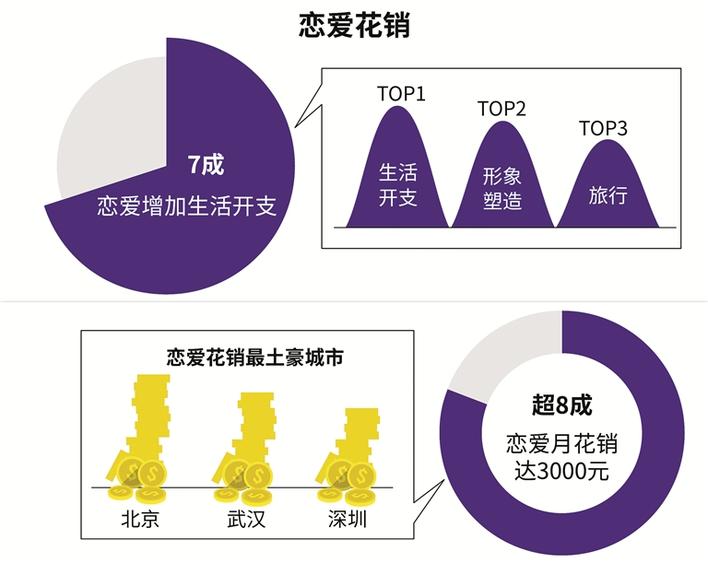 單身期間和戀愛期間的經(jīng)濟問題有什么不同呢?調(diào)查顯示,71.65%的單身男女表示戀愛將會增加生活開支,開支增加的最主要方面為生活開支、形象塑造和旅行。