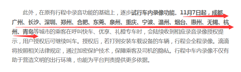 11月7日起,滴滴升級安全措施,在深圳等城市試行車內(nèi)錄像功能