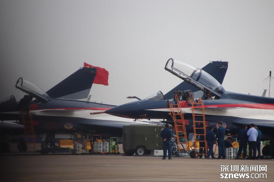 完成飛行表演,在停機(jī)坪上的殲-10。