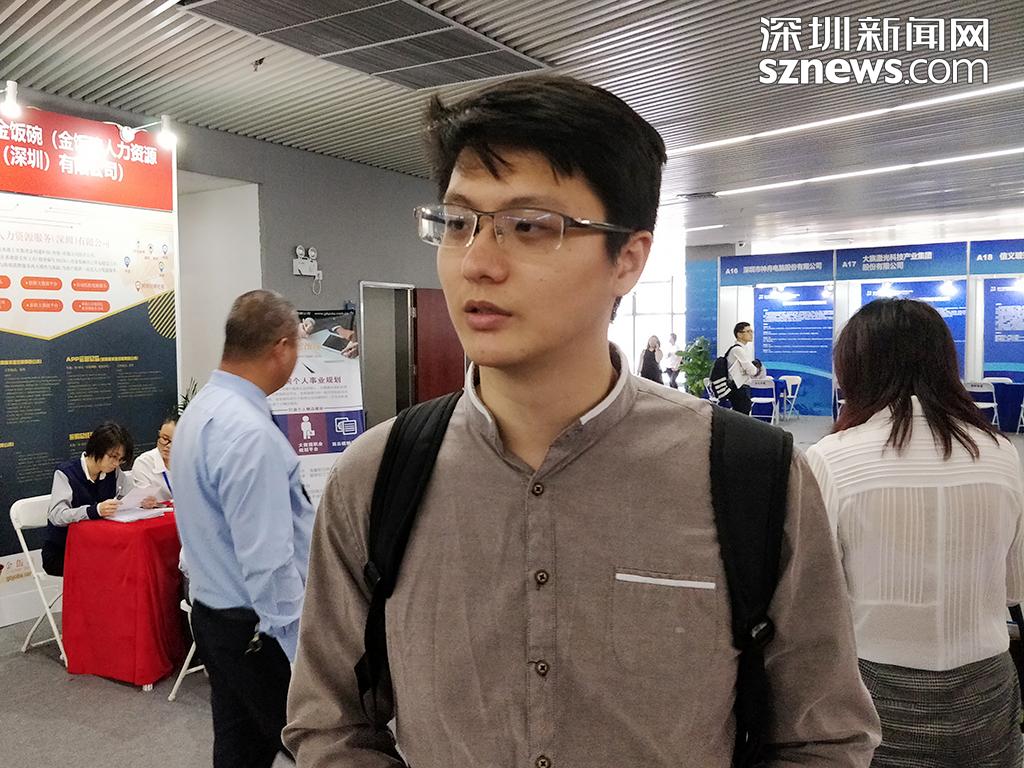 現(xiàn)場(chǎng)應(yīng)聘的劉先生已有一年的工作經(jīng)驗(yàn),此次高端人才招聘會(huì)的信息是通過深圳市人力資源社會(huì)保障局的微信公眾號(hào)得知,故來到現(xiàn)場(chǎng)希望尋得一個(gè)對(duì)口的崗位。