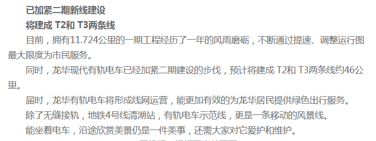 龍華有軌電車(chē)也將加緊建設(shè),建成T2和 T3兩條線(xiàn)