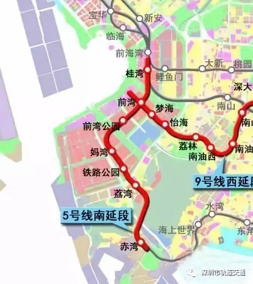 作為三期二階段建設(shè)工程的重要組成部分,地鐵5號(hào)線工程建設(shè)南延線南起赤灣站,北至既有5號(hào)線起點(diǎn)前海灣站南端,線路全長(zhǎng)7.65公里;9號(hào)線西延線東起9號(hào)線紅樹灣站,由深圳灣總部基地片區(qū)至前海深港合作區(qū),全長(zhǎng)約為10.79公里,兩條線均采用地下敷設(shè)方式。