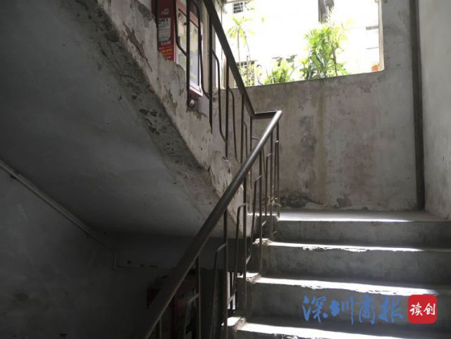 樓道內(nèi)樓梯,昏暗且布滿灰塵。