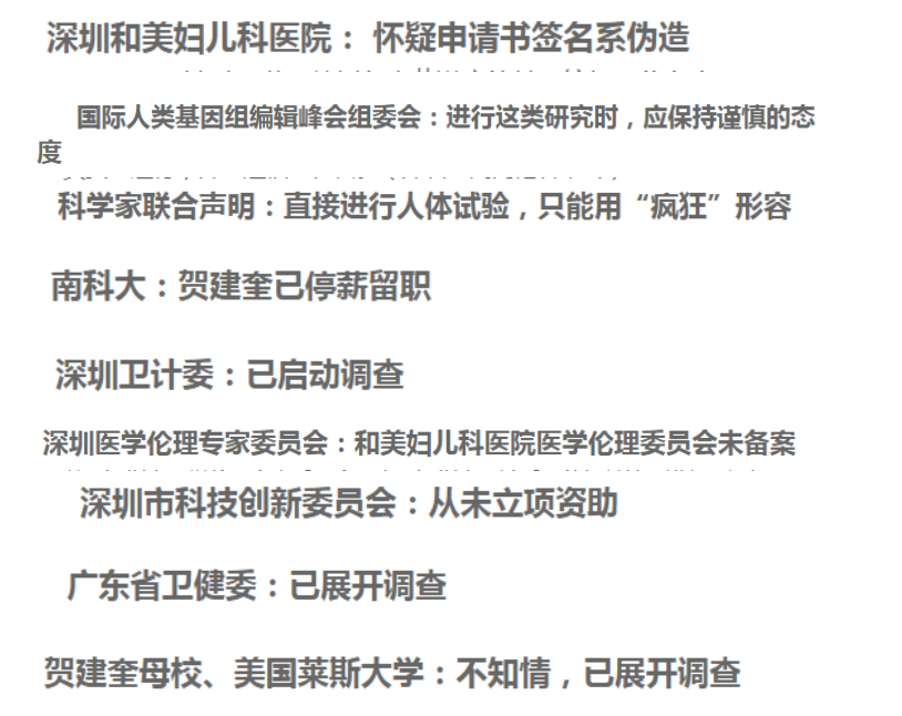 此事件涉及的多個(gè)部門也撇清了與賀建奎的關(guān)系