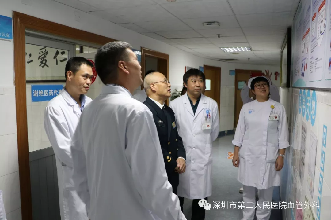 2018年11月30日,中國人民解放軍海軍軍醫(yī)大學(xué)附屬長海醫(yī)院血管外科、心臟瓣膜疾病微創(chuàng)診治中心主任,上海市血管系統(tǒng)疾病臨床醫(yī)學(xué)中心主任,全軍血管外科研究所所長,中國醫(yī)師協(xié)會腔內(nèi)血管學(xué)分會(二級)主任委員,國際知名血管外科專家景在平教授,來到深圳市第二人民醫(yī)院(深圳大學(xué)第一附屬醫(yī)院)(以下簡稱“我院”)進(jìn)行座談、臨床查房、會診以及向全市住院醫(yī)師規(guī)培學(xué)員、教師與基地管理人員進(jìn)行專題學(xué)術(shù)講座。