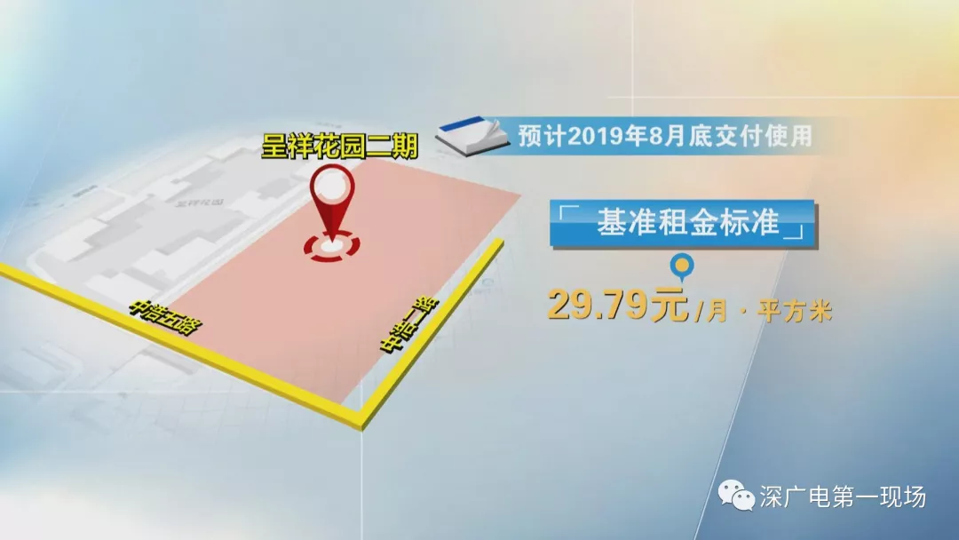 呈祥花園二期位于龍崗區(qū)坂田街道,中浩二路與中浩五路的交接處,預(yù)計2019年8月底交付使用。項目共有5棟住房,基準(zhǔn)租金標(biāo)準(zhǔn)暫定為每月每平方米29塊7毛9。