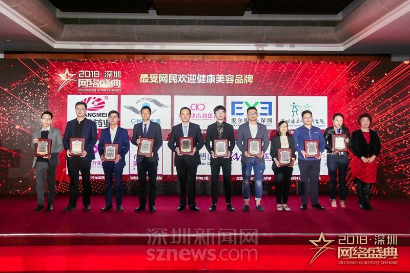 “十大行業(yè)最受網(wǎng)民歡迎品牌”獎項(xiàng)(健康美容)獲獎代表上臺領(lǐng)獎