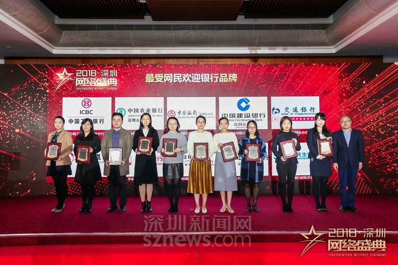 “十大行業(yè)最受網(wǎng)民歡迎品牌”獎項(xiàng)(銀行)獲獎代表上臺領(lǐng)獎