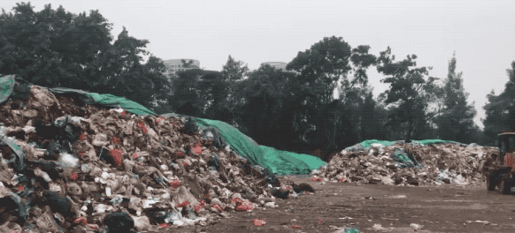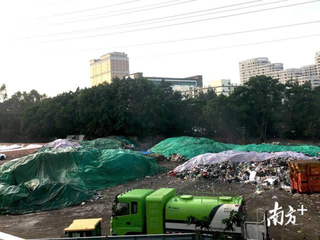 一位正在用帆布遮蓋垃圾的工作人員表示,這里堆放的垃圾全部來自大浪街道轄區(qū)內的生活垃圾。據(jù)他了解,他們公司每天會運送9車垃圾,一車可運來十多噸。