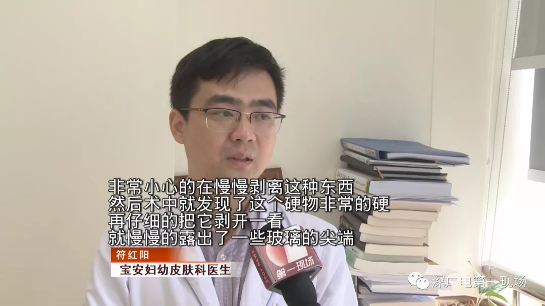 從曾女士的左側(cè)下眼瞼中取出的,正是這個長度接近一厘米的玻璃碎塊。