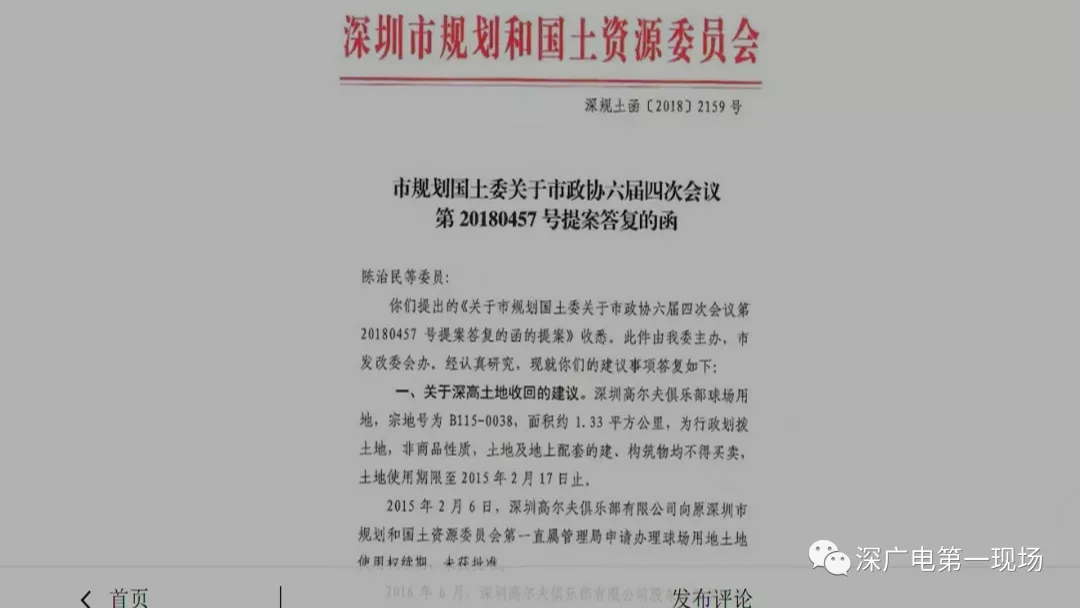 深圳高爾夫俱樂部球場(chǎng)用地的所有權(quán)問題,一直備受關(guān)注。曾有委員提出提案,將高爾夫球場(chǎng)收回作為公共公園,這一提案在2018年也得到過市規(guī)劃國(guó)土委的回復(fù)。