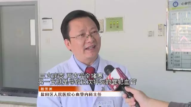 鹽田區(qū)人民醫(yī)院心血管內(nèi)科主任程芳洲告訴記者,通過王先生發(fā)病的情況以及心電圖的改變,醫(yī)生們判定他是急性心肌梗死,在做造影后,圖像更證實(shí)了是非常嚴(yán)重的一種三支病變,其中兩支完全堵塞,另一支就是導(dǎo)致這次猝死的罪犯血管。