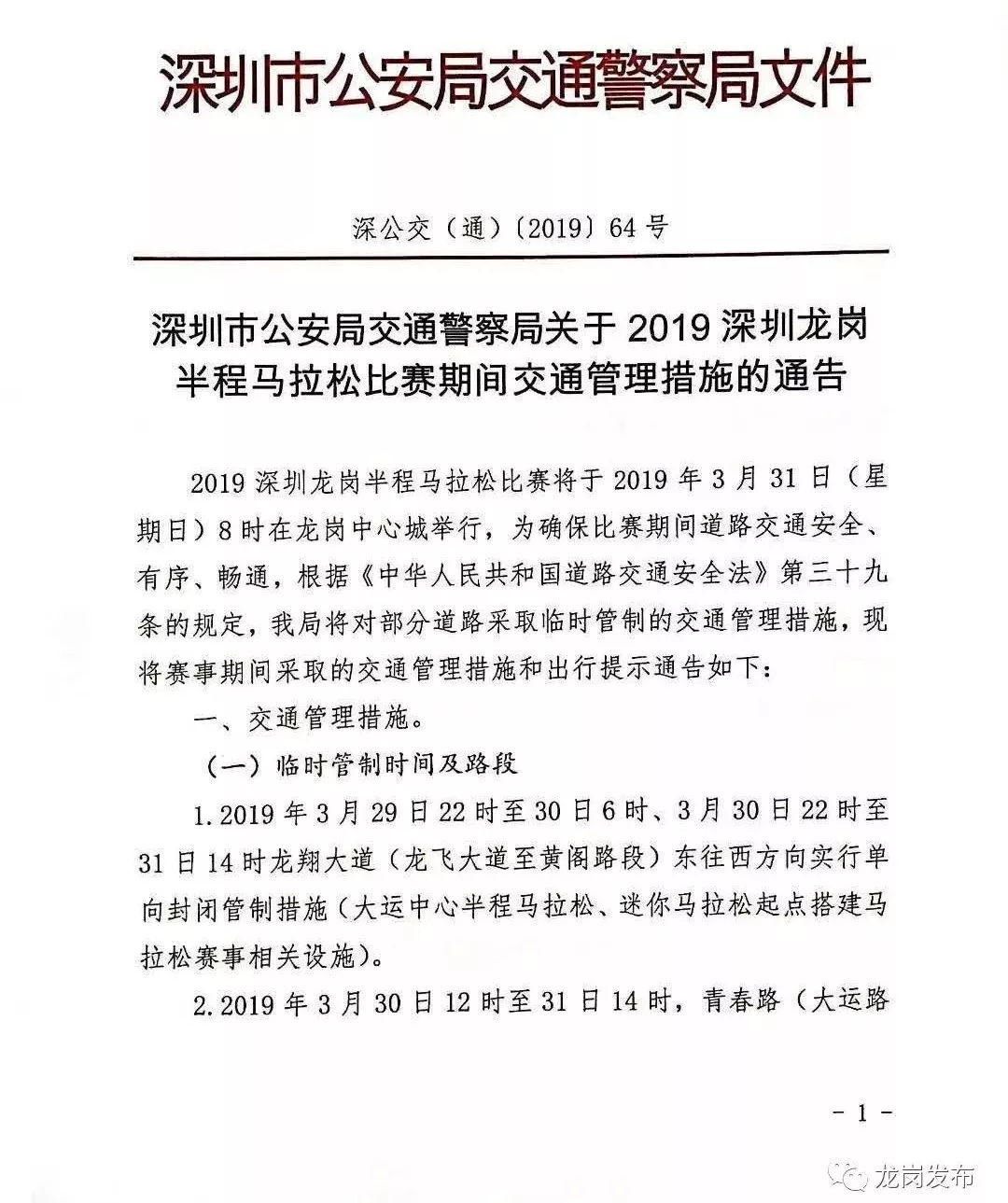 3月29日22時(shí)至30日6時(shí)、3月30日22時(shí)至31日14時(shí)龍翔大道(龍飛大道至黃閣路段)東往西方向?qū)嵭袉蜗蚍忾]管制措施(大運(yùn)中心半程馬拉松、迷你馬拉松起點(diǎn)搭建馬拉松賽事相關(guān)設(shè)施)。