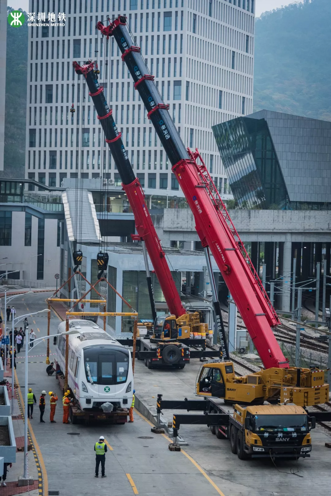 2019年4月1日,深圳地鐵5號線南延線首列車運(yùn)抵深運(yùn)車輛段。