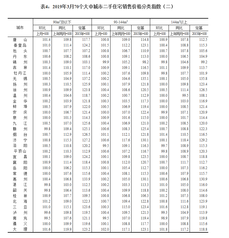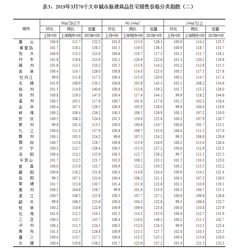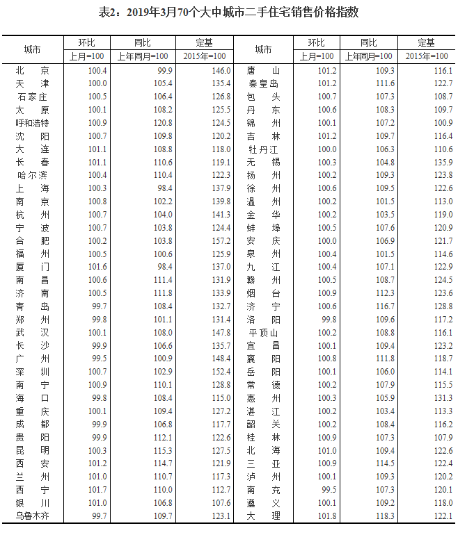 2019年3月份70個(gè)大中城市商品住宅銷售價(jià)格變動(dòng)情況